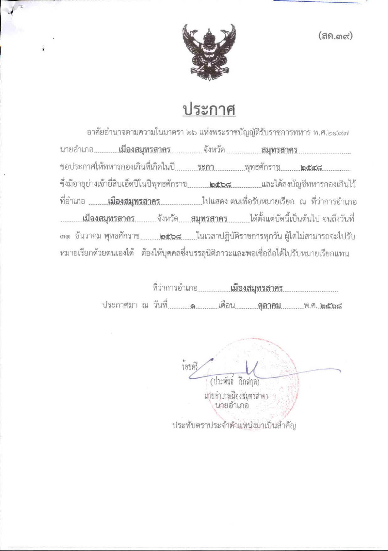 ประชาสัมพันธ์การรับหมายเรียกเข้ารับราชการทหาร