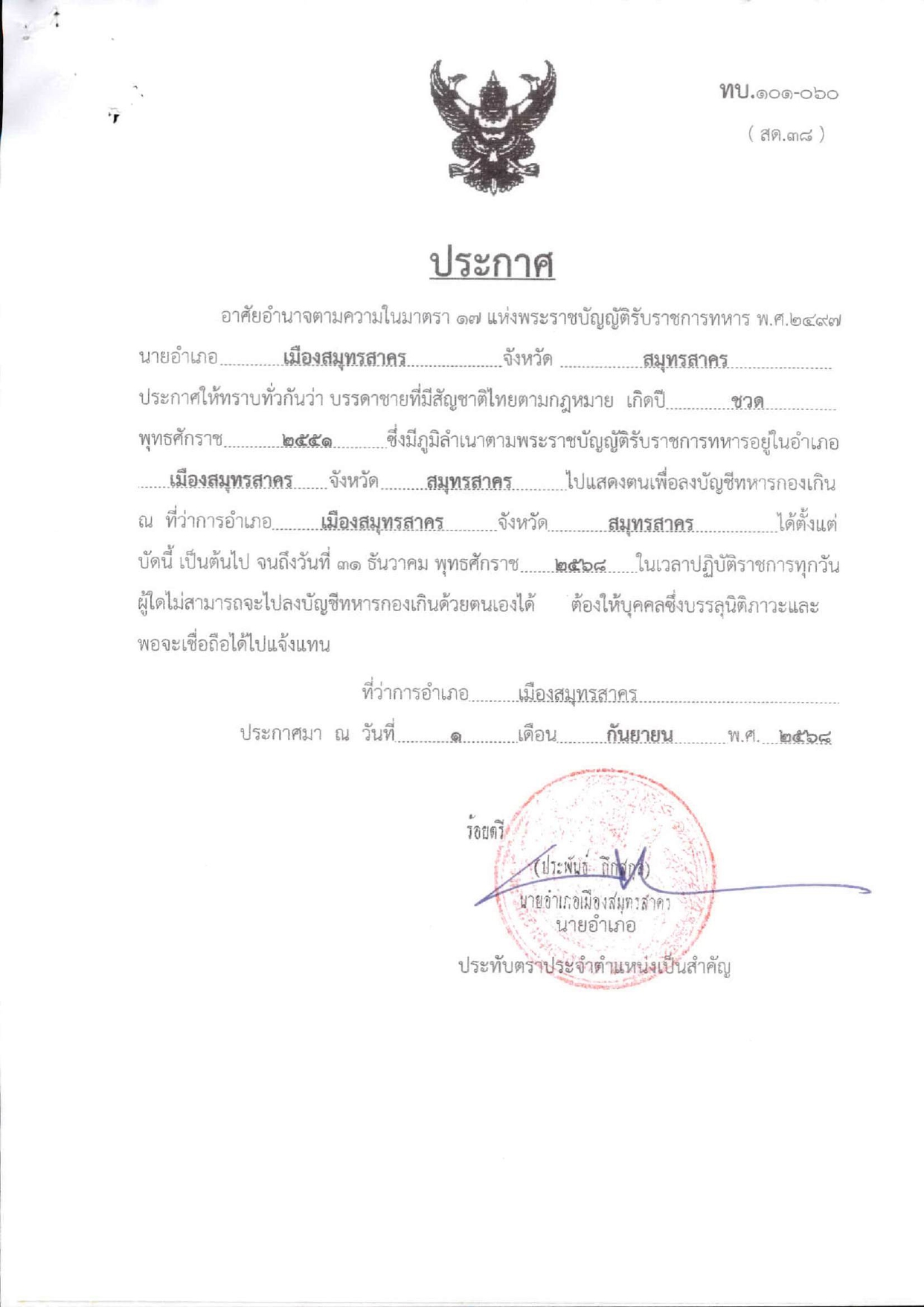 ประชาสัมพันธ์การลงบัญชีทหารกองเกิน